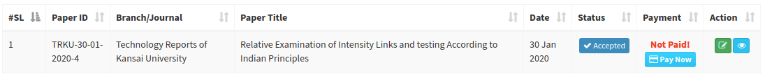 7. After peer review if your paper is Accepted then your paper status will change. Your paper status will show “Accepted” now you are eligible to pay your payment